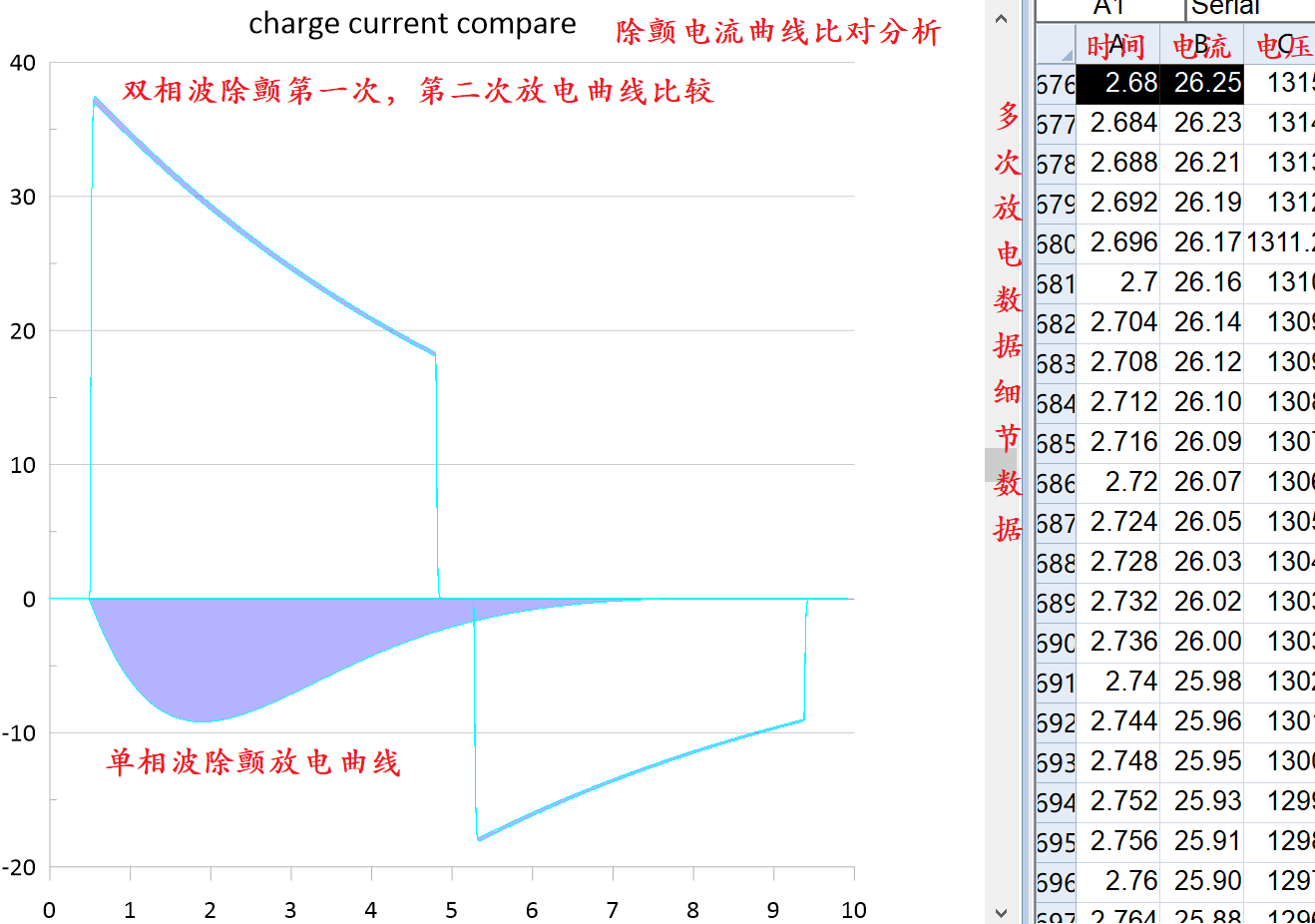 1、放電過程的數(shù)據(jù)分析采樣率高達(dá)4微秒一次,支持?jǐn)?shù)據(jù)存儲和下載。