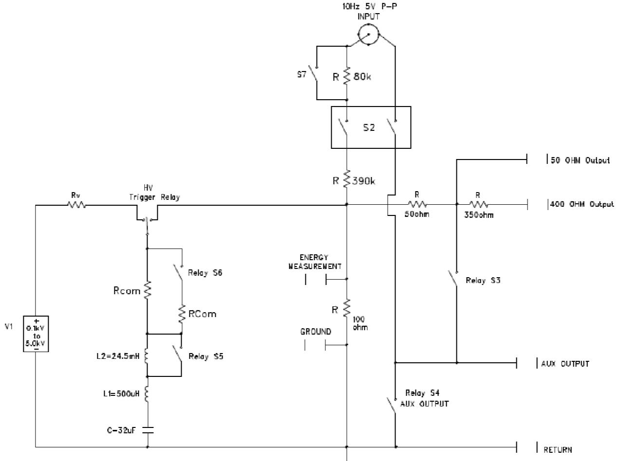 所有這些測試都使用相同的5000V信號(hào)源,但輸出波形不同。包含各種測試所需的不同電路。更多顯著的變化有:輸出電壓數(shù)位選定、直接讀出焦耳數(shù)據(jù)、精確度上升、更快脈沖時(shí)間"20秒",信號(hào)發(fā)生器電壓上升,內(nèi)置成功和失敗的參考等。