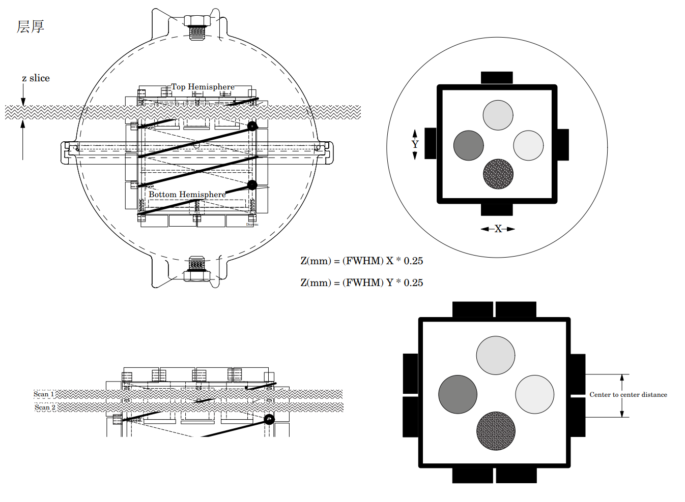 在正常的或室溫下,核磁共振系統(tǒng)頭部成像質(zhì)量的量化評價,測量磁場均勻性、T1/T2值、信噪聲、空間分辨率(高分辨率)、密度分辨率(低對比度)、幾何線性.