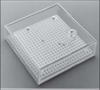 該體模設(shè)計(jì)主要用于圖像均勻性的測試方案,測量圖像中信號(hào)強(qiáng)度的均勻性。 網(wǎng)格部分也可用于評(píng)估圖像幾何線性。在模型的對角線表面上附著一個(gè)裝有可配置溶液的小扁平容器,可用于檢測相位誤差。