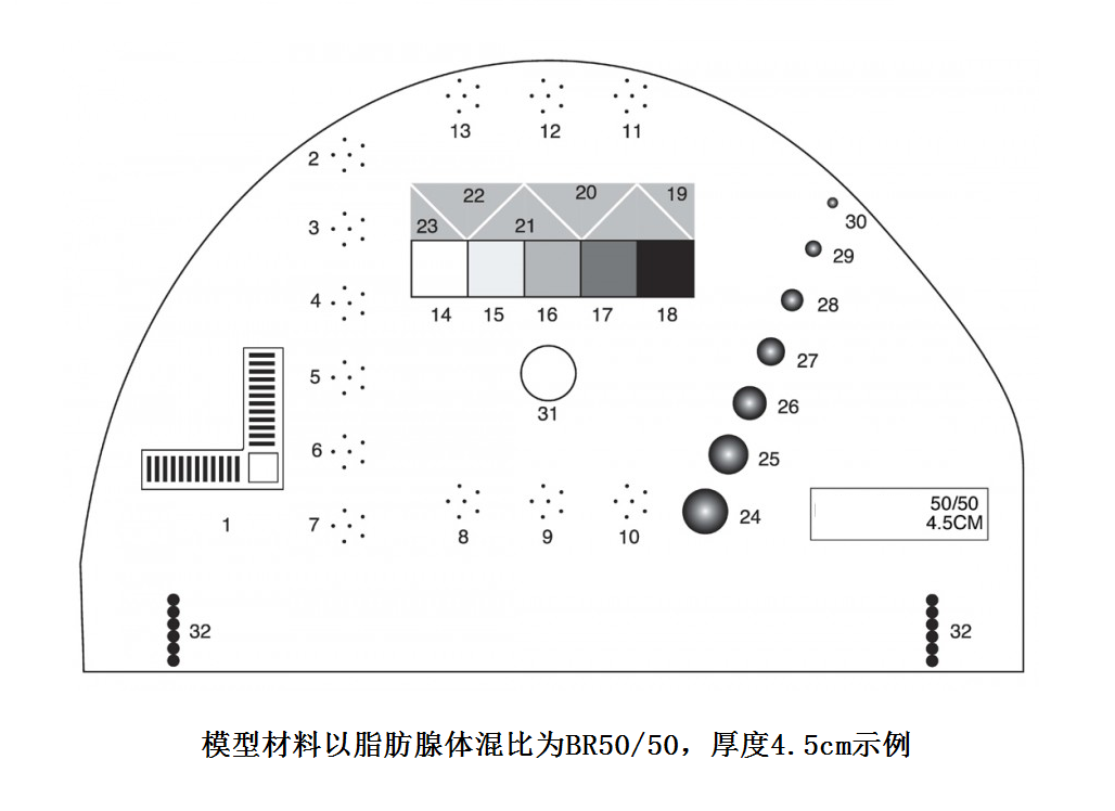 組織等效乳腺攝影圖像質(zhì)控模體,壁厚4.5厘米,腺體50%脂肪50% |