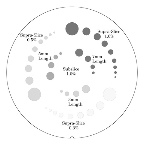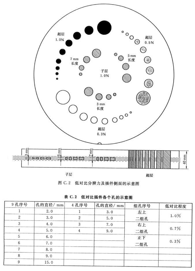 內(nèi)層孔陣:對(duì)比度0.3%、0.5%、1.0%;直徑3、5、7、9mm