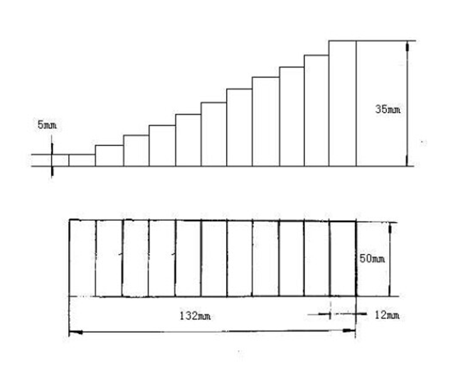 2. 階梯:首階高5.0mm,逐次遞增3.0mm高,階寬12mm,偏差<0.05mm