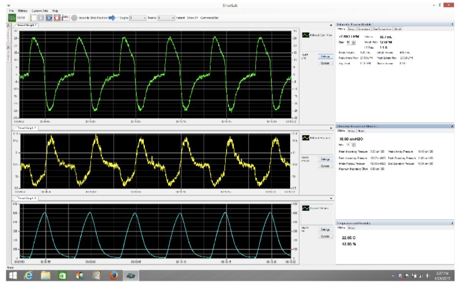 帶有Insight™軟件的SmartLabTM儀器系統(tǒng)由硬件和軟件兩部分組成的數(shù)據(jù)采集系統(tǒng),用于記錄和研究各種呼吸信號。 它是一個模塊化系統(tǒng),可以配置用于各種電壓測量。 基本模塊由一個主系統(tǒng)電路板組成,該電路板至多可以容納四個傳感器模塊或模擬輸入模塊。 它還具有用于Nonin xPod血氧儀,在線和側(cè)流模型的Masimo IRMA CO2濃度傳感器以及溫度傳感器的輸入。 也可以使用可選的內(nèi)部氧氣濃度傳感器。 具有八個輸出和四個輸入的數(shù)字量I / O端口可以連接到閥門控制器或其他可以接收TTL電平數(shù)字信號的設(shè)備。 可選的模擬輸出模塊可用于最多傳輸4個測量或計算值。