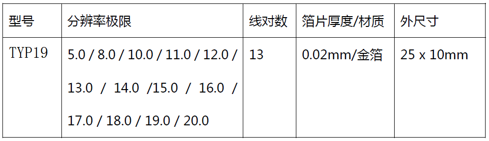訂貨號200363:typ19 乳腺X線攝影成像系統(tǒng)空間分辨力試驗器件