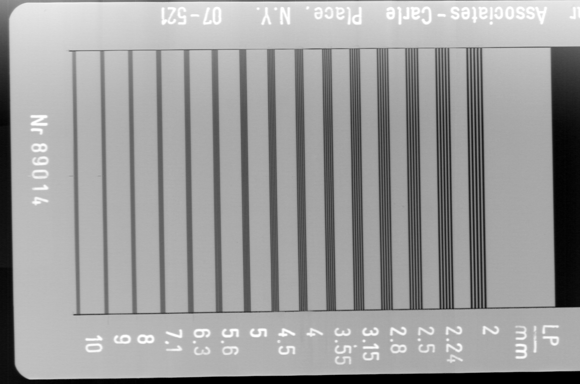高對比度測試卡或空間分辨率測試卡,以垂直線對陣列的形式進(jìn)行影像增強(qiáng)系統(tǒng)的視覺分辨