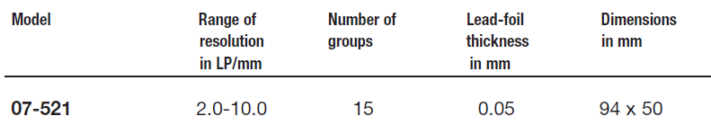 | 200540 | 07-525 X射線分辨率測試卡-乳腺(線對卡 200540) | 0 | 1 | ||