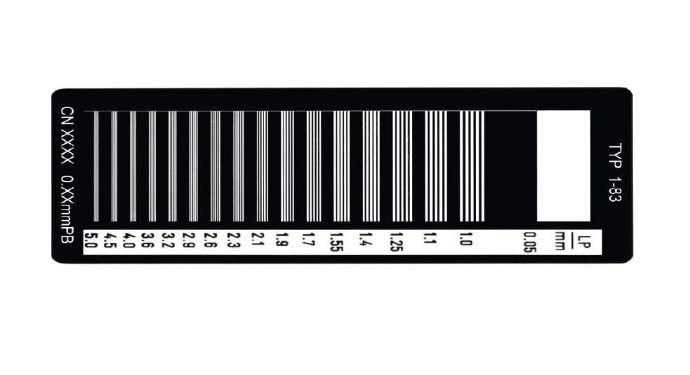 高對(duì)比度測(cè)試卡或空間分辨率測(cè)試卡,以垂直線(xiàn)對(duì)陣列的形式進(jìn)行影像增強(qiáng)系統(tǒng)的視覺(jué)分辨