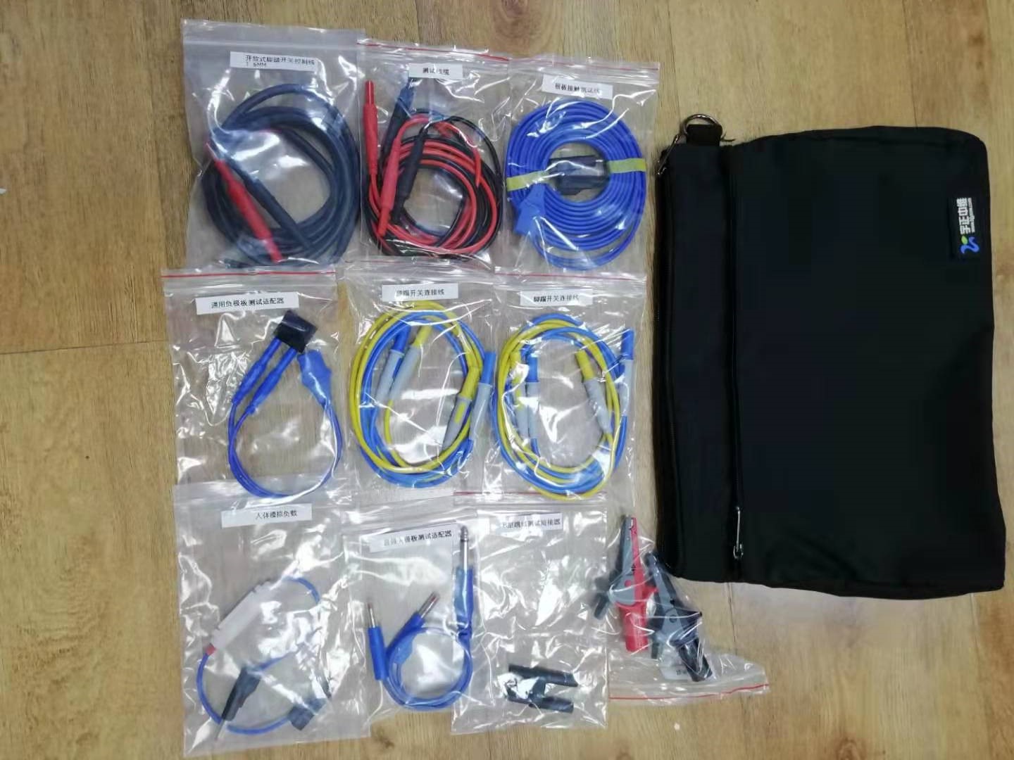 24. 訂貨號100394-X:測試配件包,含2米長紅黑專用測試線1,廣口測試夾1對,開放式腳踏開關(guān)控制線1條,人體模擬負載1支,跳線短接器1支,6.3mm音頻頭負極板測試適配器1,腳踏開關(guān)連接線,威力單級腳踏開關(guān)測試適配器,通用型負極板測試適配器1個,REM極板接觸性測試線1條