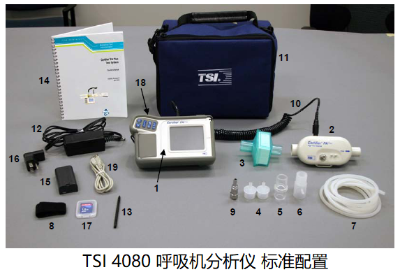 推薦配置:4088型顯示單元1只,4081型高流速模塊1只,細菌過濾器(22mm×22mm公接頭/母接頭,配合高流量模塊使用)1只,適配器(22mm×6mm,用于接口高流量模塊到低流量過濾器)2個,適配器(15mm內(nèi)徑×22mm外徑)1只,氣道壓力接頭1只,壓力軟管(3.2 mm 內(nèi)徑×6.4 mm 外徑)1米,綁帶(用于高流量模塊)1個,高壓端口適配器(快插接頭)1只,流速模塊連接電纜1根,便攜箱1個,電源適配器1只,電容筆1只,操作手冊1份,鋰離子電池1個,SD閃存卡1個,顯示單元橡膠保護外套1個