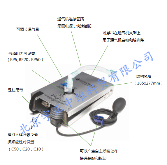 •采用醫(yī)用通氣波紋管和鋁質(zhì)材料作為支撐系統(tǒng),提供更完美的線性和可預(yù)見的呼吸模擬。