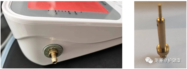 ④ 擰開(kāi)袖套下方的螺絲,取下袖帶,將檢測(cè)儀與最右側(cè)接口相連,即可進(jìn)行靜態(tài)壓力檢測(cè)。