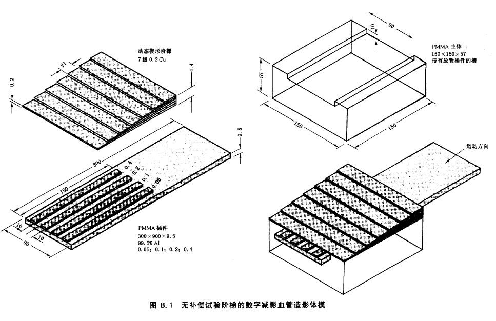 2.血管模擬體模插件:基材PMMA,長300mm,寬90,厚9.5mm。血管模擬條:AL99.5%鋁條四條,條間距離10mm,長150mm,寬10mm,厚度0.05 mm、0.1mm、0.2mm、0.4mm。