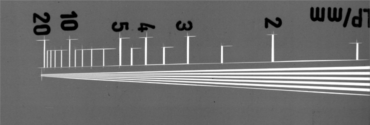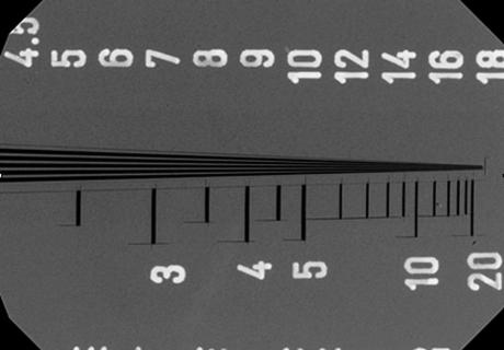 特殊的空間分辨率測(cè)試卡,以扇形的發(fā)散線條持續(xù)改變空間頻率的形式進(jìn)行影像增強(qiáng)系統(tǒng)的視覺(jué)分辨