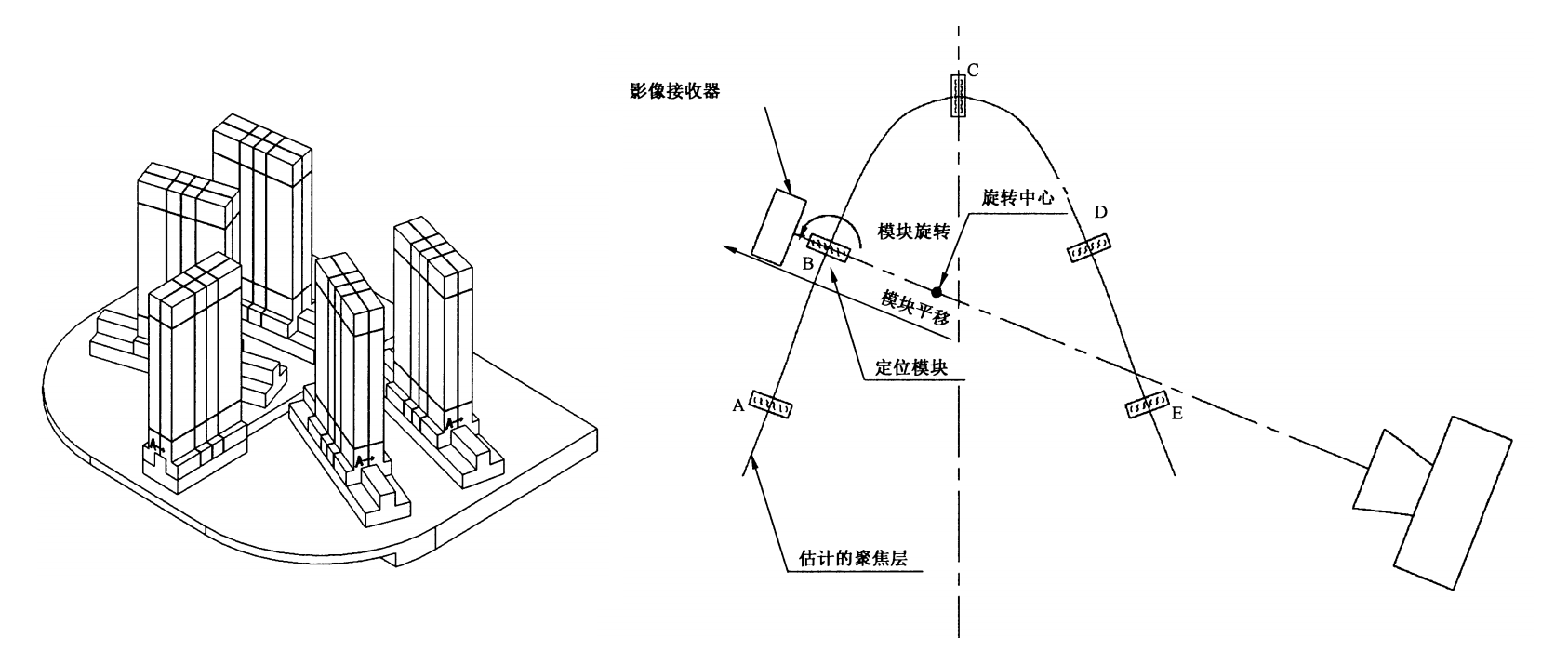 1.聚焦層定位:5只測試插件對稱分布于中軸和兩側(cè),具有平行移動滑軌和360°旋轉(zhuǎn)能力。