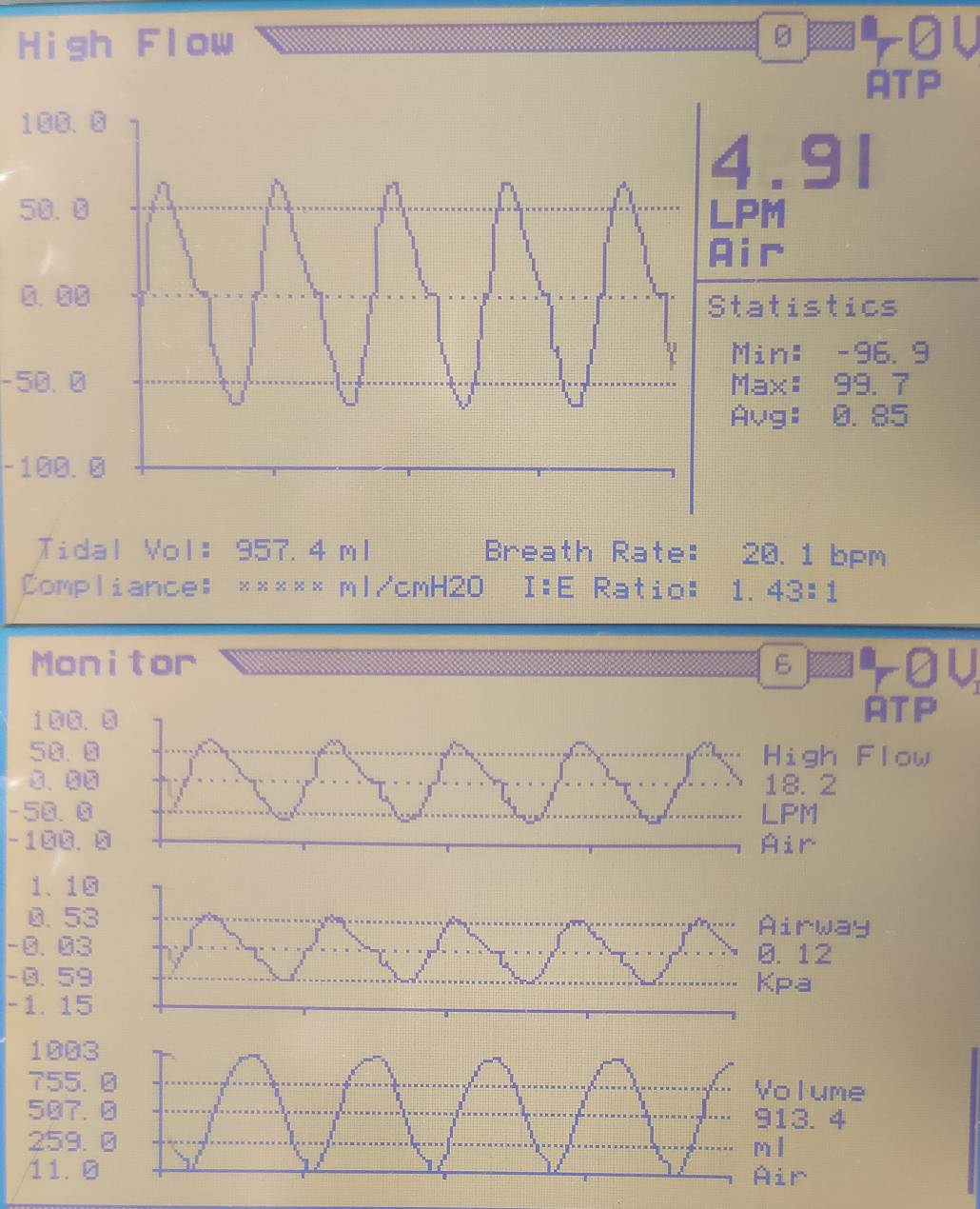 潮氣量為1L,精度2%,氣流波形為雙向正弦波氣流和半正弦波氣流