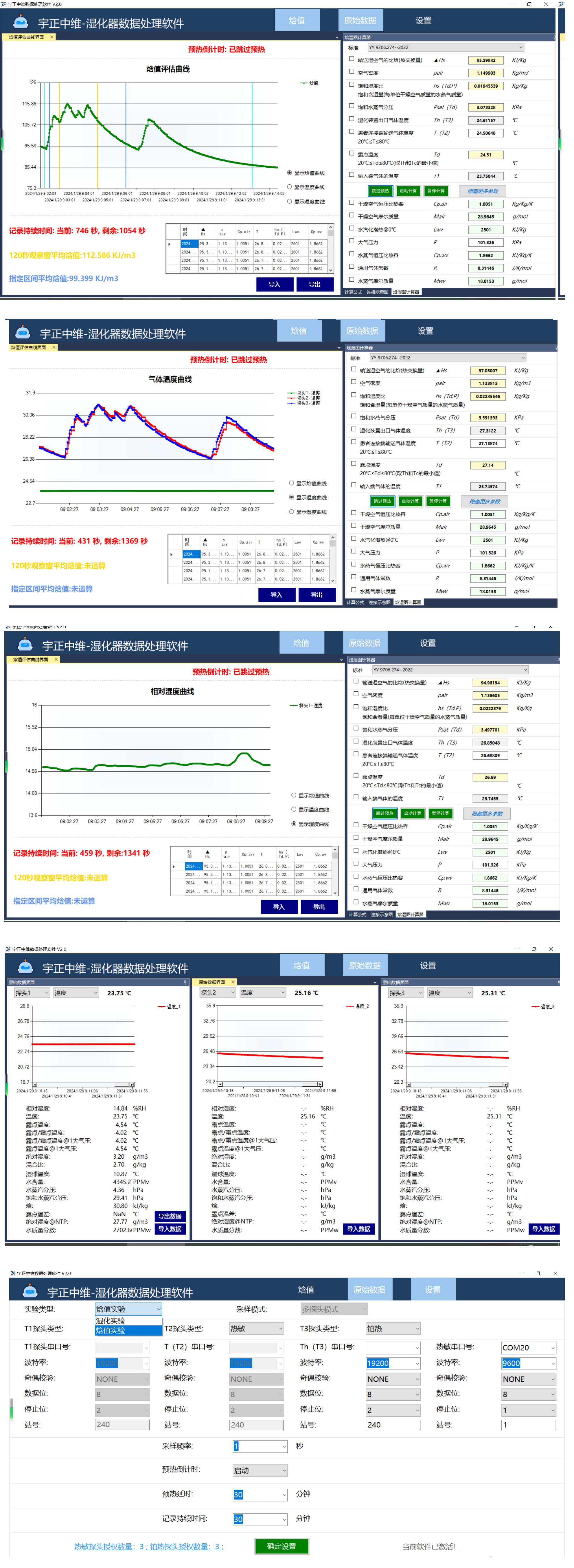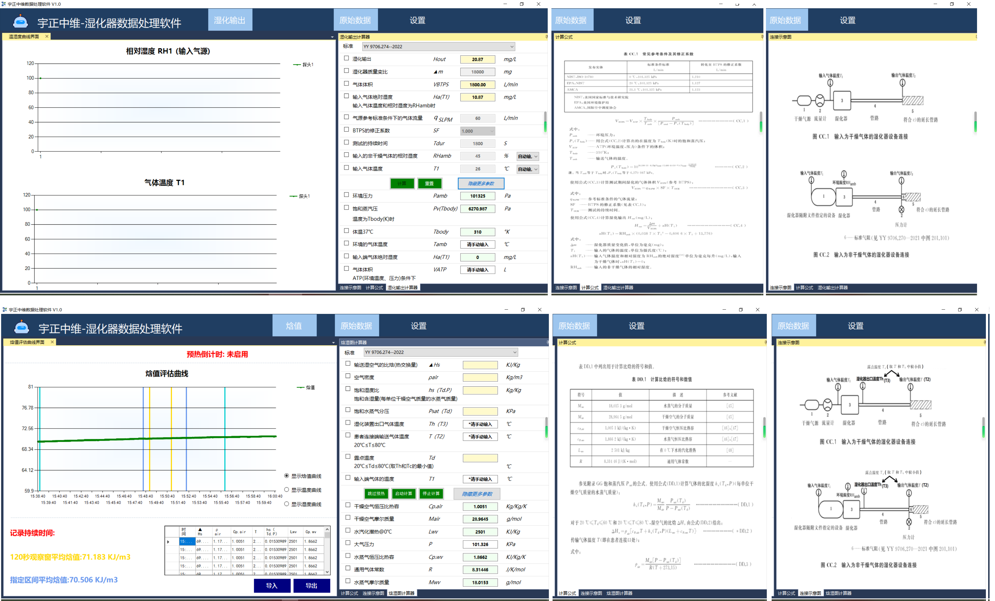 數(shù)據(jù)分析軟件可以分析濕化計(jì)算和焓值分析兩大功能,直接顯示數(shù)值和曲線圖,提供背景計(jì)算公式,并提供管路連接明示圖。采樣數(shù)據(jù)可以實(shí)時采集并自動導(dǎo)入計(jì)算,采樣間隔1-5秒可以設(shè)置。