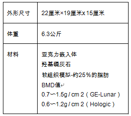 標(biāo)準(zhǔn)配置: 雙能X用腰椎檢測模型1只,運輸包1只,用戶手冊1份