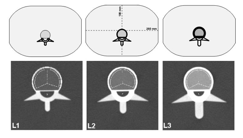 用于雙能X線骨密度儀(DXA)的面積骨密度和定量CT(QCT)的體積骨密度的正位和側(cè)位方向的腰椎骨礦物質(zhì)密度的校正。