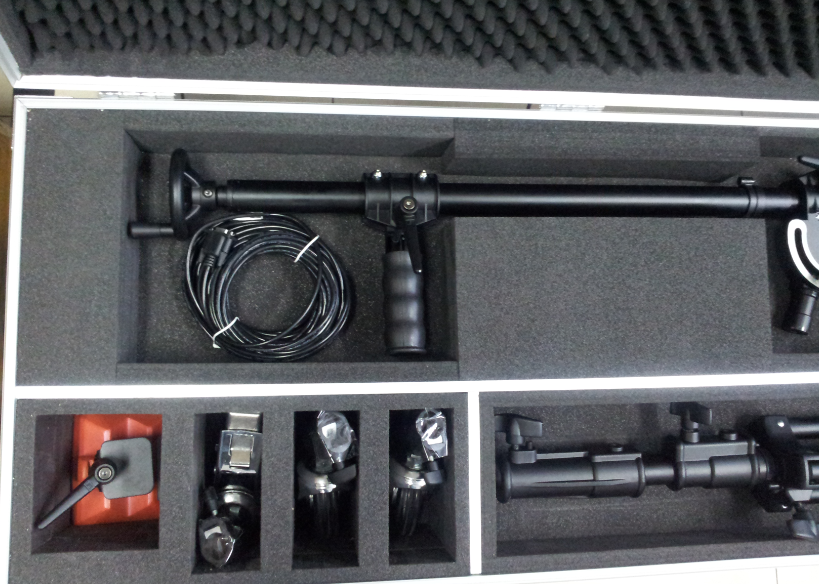 標(biāo)準(zhǔn)配置:支架1付,連接適配器1套,4.5kg配重1只,移動(dòng)腳輪3只,便攜箱1只