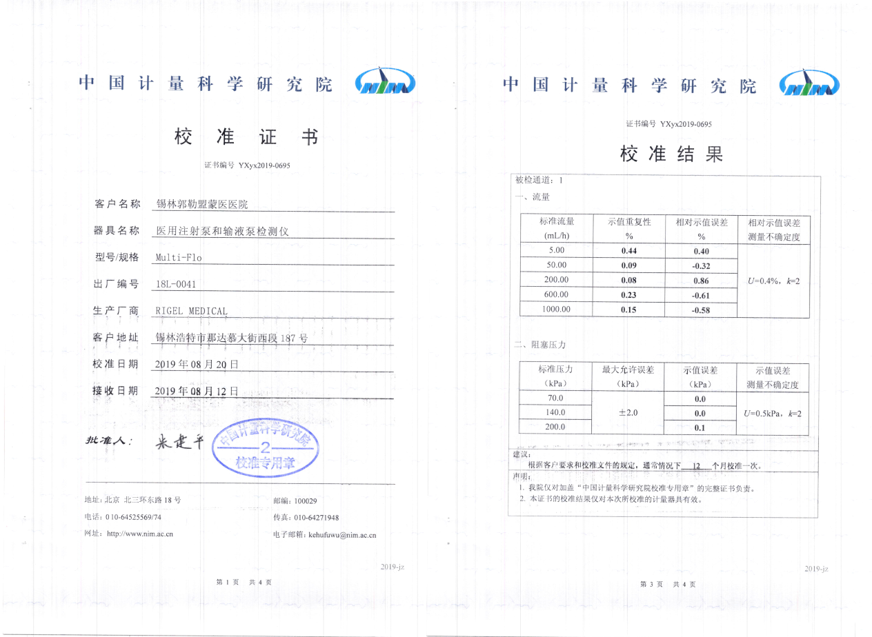 中國計量科學(xué)研究院校準(zhǔn)證書: