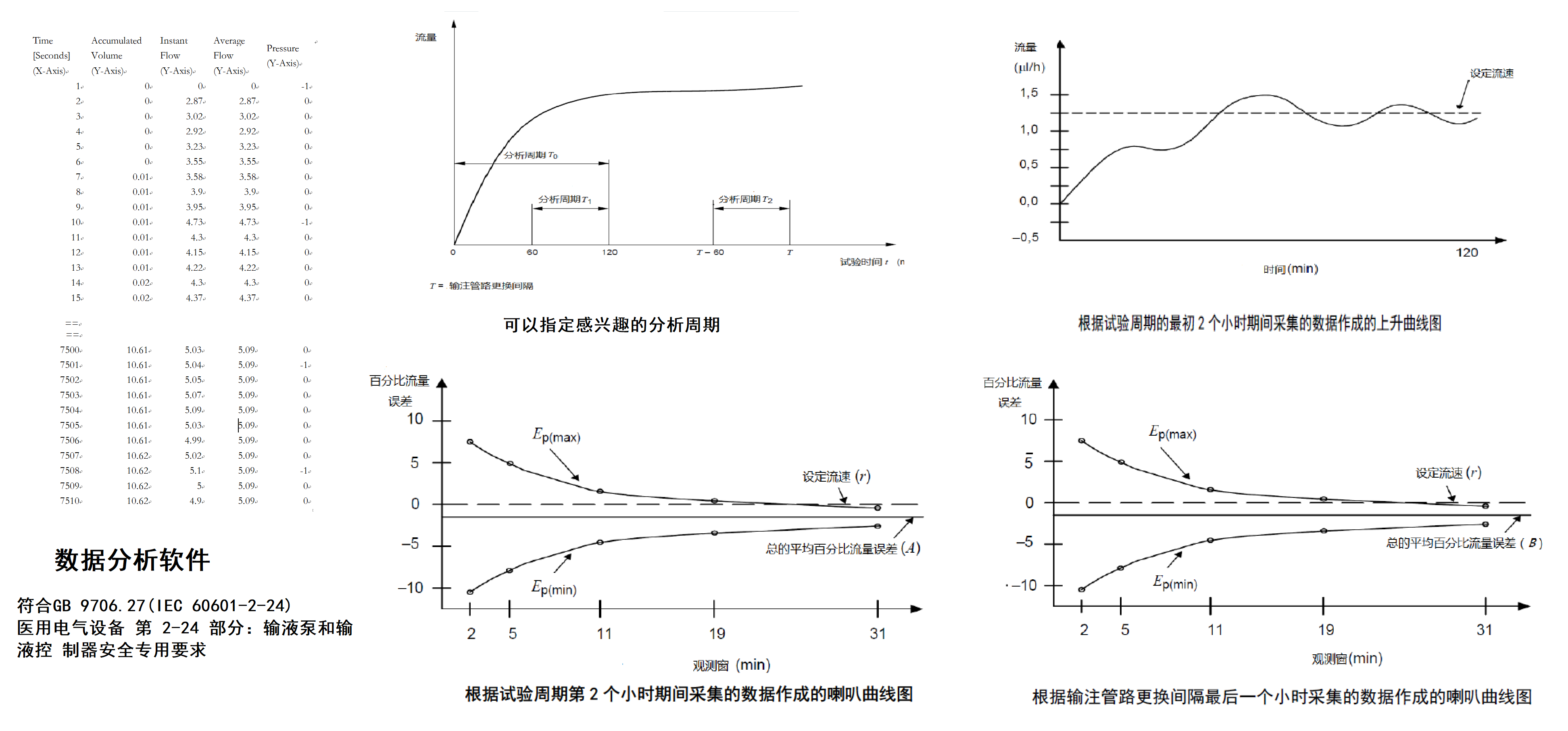 數(shù)據(jù)分析軟件符合“GB 9706.27醫(yī)用電氣設(shè)備 第 2-24 部分:輸液泵和輸液控 制器安全專用要求” ,適用于腸內(nèi)營養(yǎng)泵、輸液泵、便攜式輸液泵、注射/容器泵、容量式輸液控制器、容量式輸液泵等的基本性能分析。