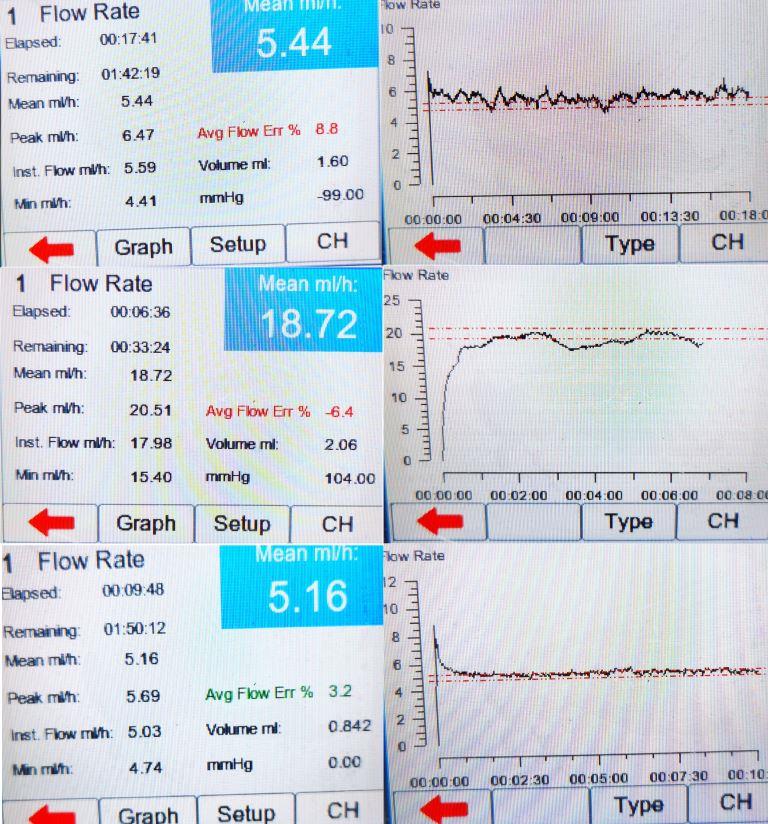 背景壓是對實際輸注藥液時人體血壓的真實存在情況的一種模擬,是現(xiàn)代醫(yī)療臨床藥物精確控制的真實反映,單純0mmHg背景壓力的流量示值不足以說明泵的安全性。在“GB 9706.27(IEC 60601-2-24)醫(yī)用電氣設(shè)備 第 2-24 部分:輸液泵和輸液控 制器安全專用要求”中也是要求檢測13.33KPa(+/-100mmHg)背景壓力的流量示值。multi-flo利用內(nèi)置的造壓單元可以產(chǎn)品任意的背景壓壓力,無需外接其它任何裝置。