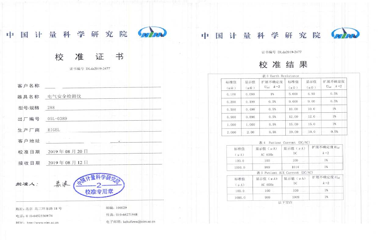 中國計(jì)量科學(xué)研究院校準(zhǔn)證書: