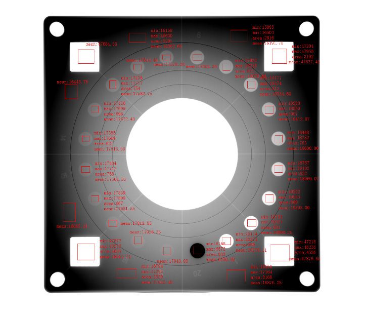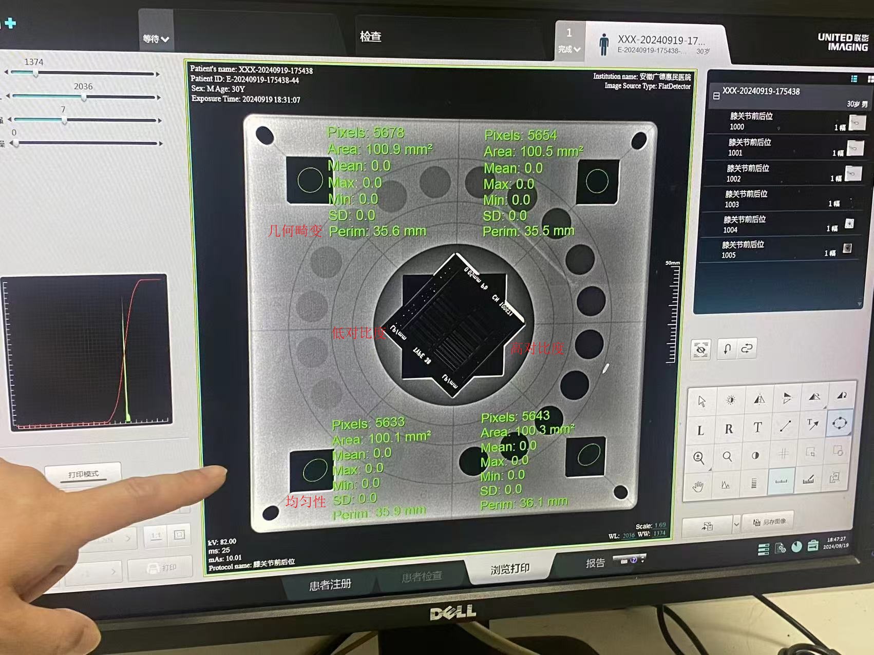 一次曝光完成六個(gè)成像性能指標(biāo)檢測(cè),線束軸垂直度, 空間分辨力,低對(duì)比度,殘影,影像均勻性,圖像幾何畸變.